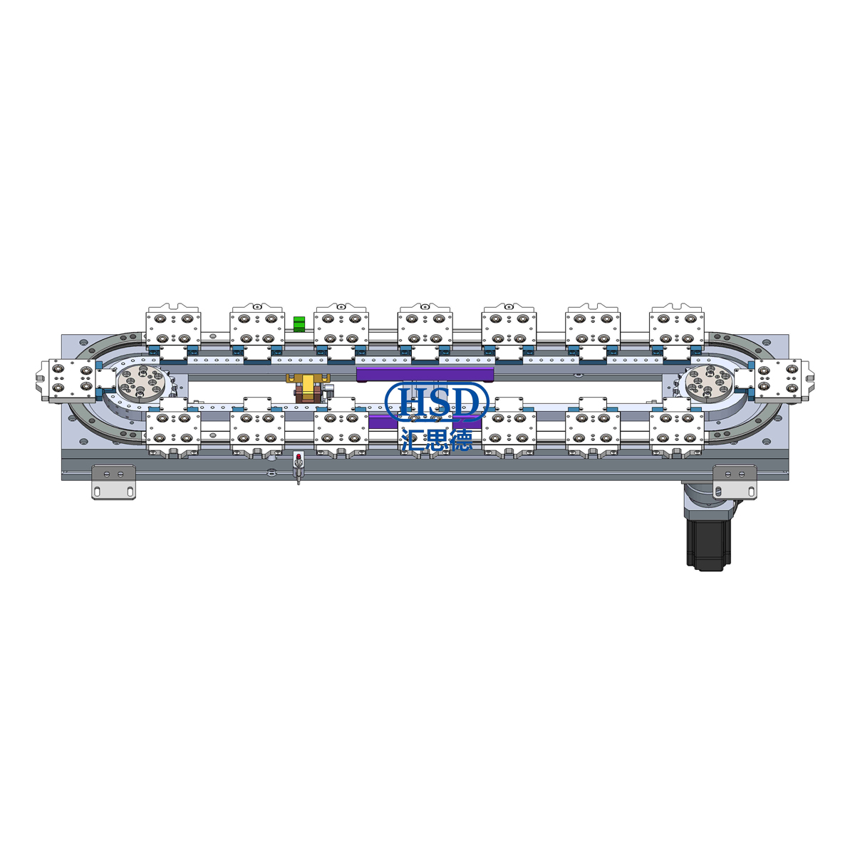 Elliptical profile chain annular guide rail conveyor line, 16 stations 4 positioning, 152.6mm station spacing, 255mm diameter arc, elliptical profile annular guide rail circulation line 3D model.